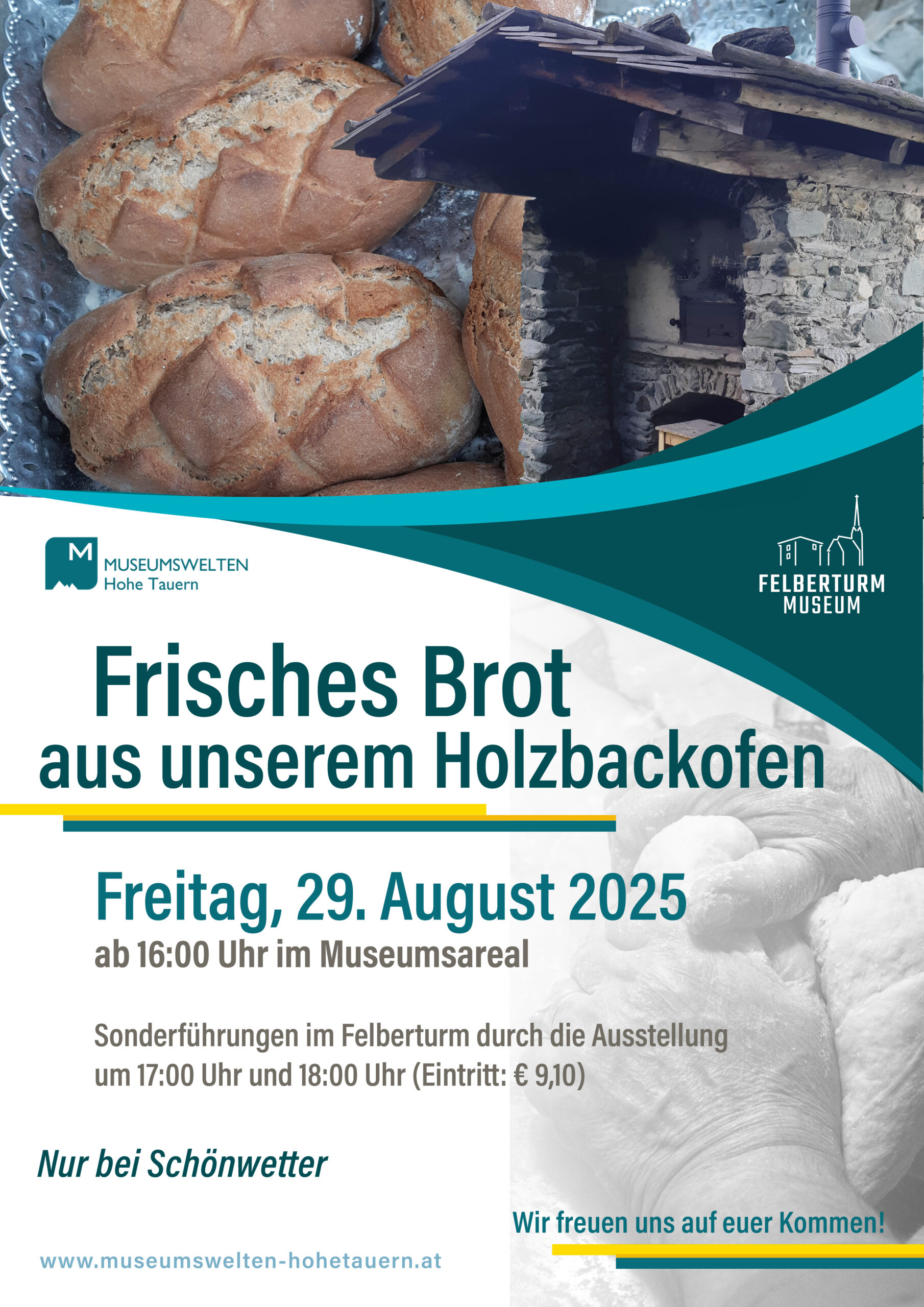 Holen Sie sich am Freitag, dem 29. August ab 16 Uhr ein frisch gebackenes Brot im Areal des Felberturms in Mittersill ab.