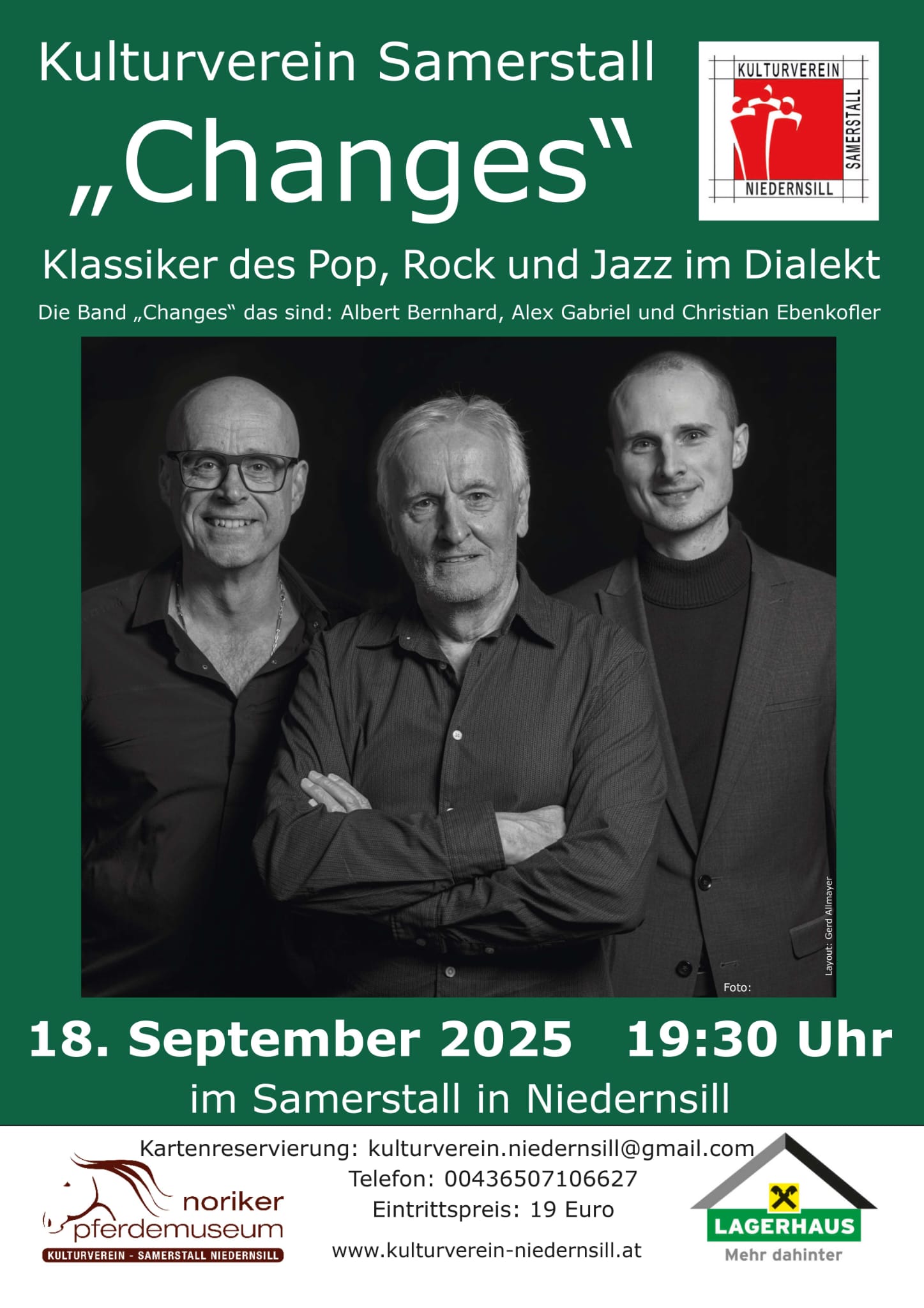 Der Kulturverein Samerstall und wir laden Sie recht herzlich zum Konzert von der Band „Changes“ ein.