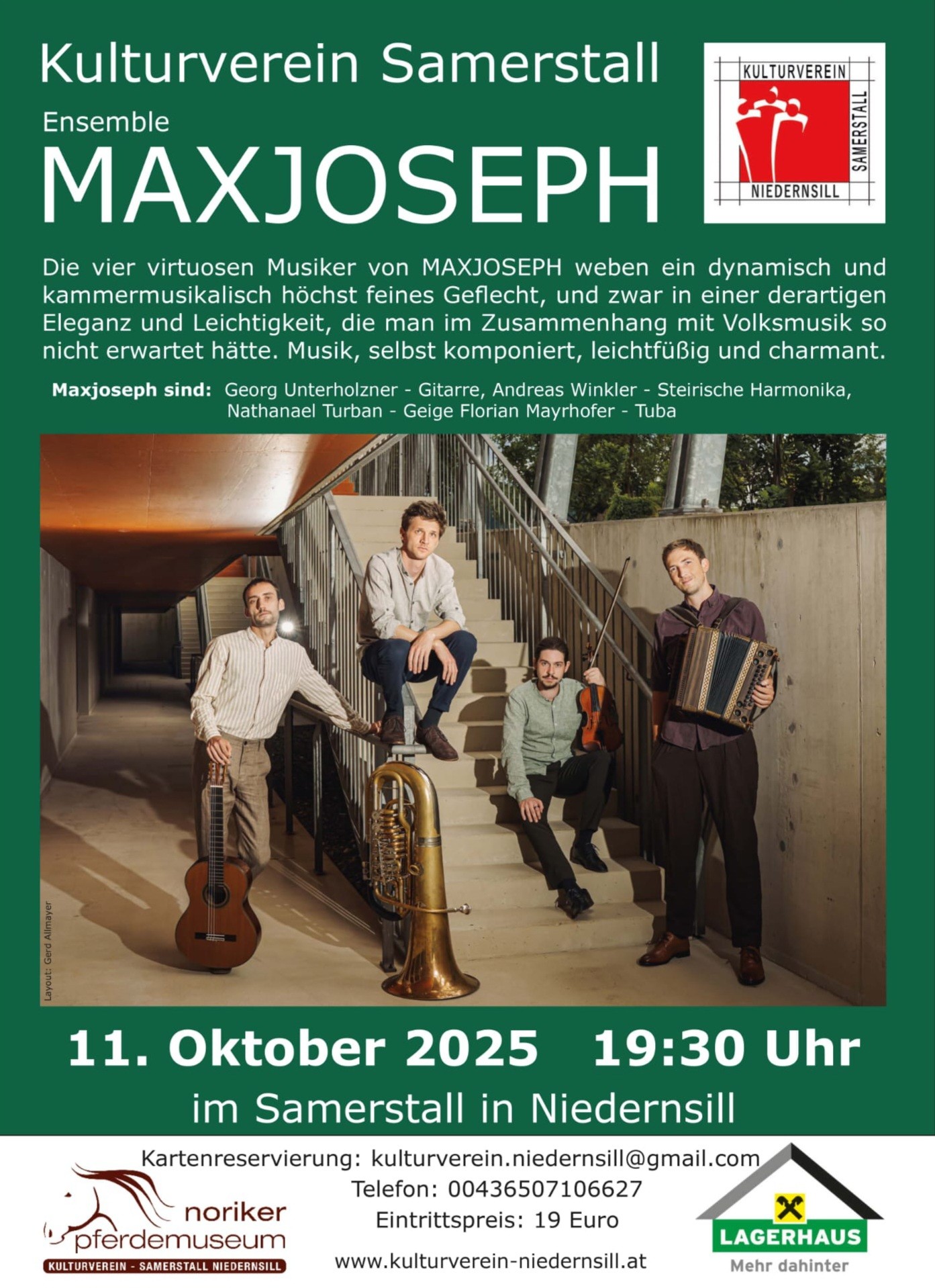 Wir bitten um Kartenreservierung unter: kulturverein.niedernsill@gmail.com oder Tel.: 0043 650 71 06 627