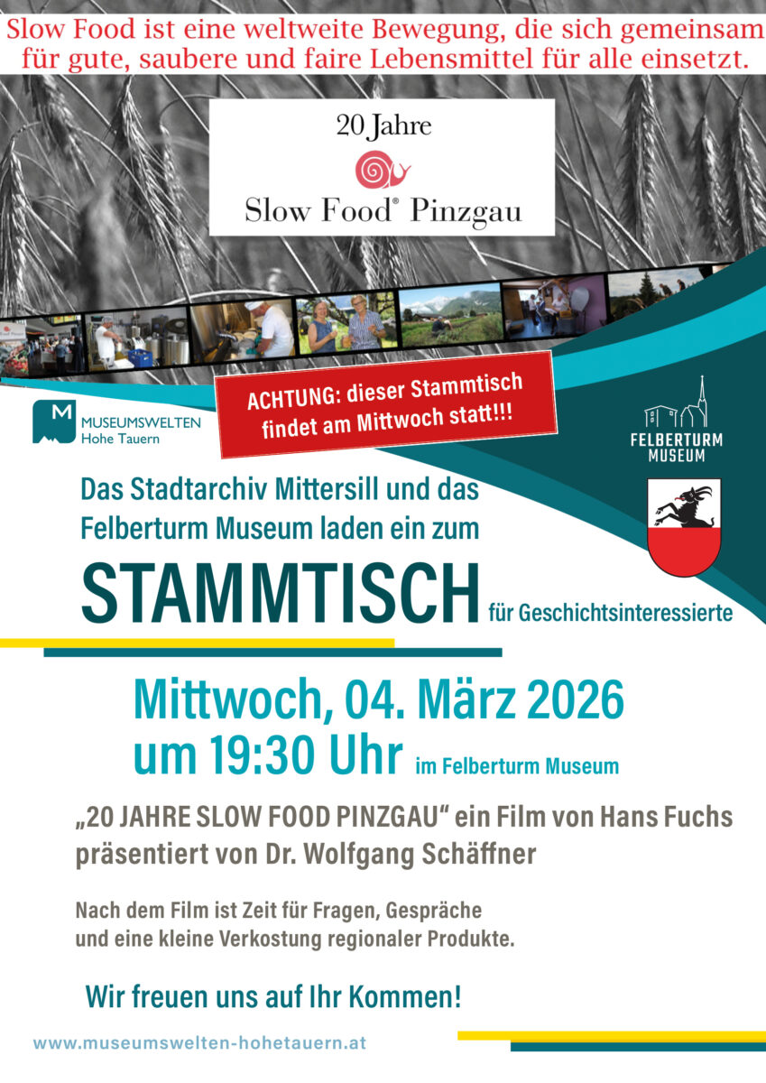 Am Mittwoch, 04. März laden das Stadtarchiv Mittersill und das Felberturm Museum zum nächsten Museumsstammtisch ein: