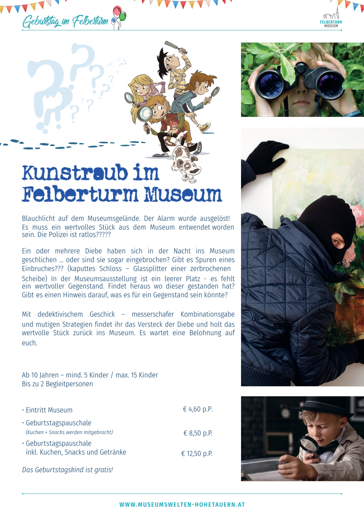 Im Felberturm Museum Mittersill und im Noriker Pferdemuseum Niedernsill bieten wir Geburtstagspartys für Kinder mit verschiedenen Mottos an: